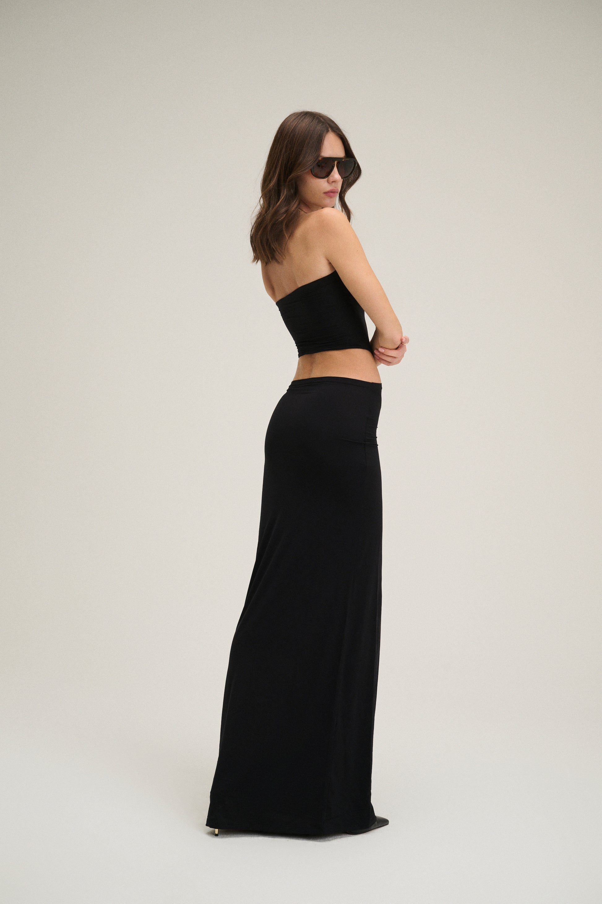 This dress features cut-outs at the waist, while our fabric allows you to wear it low or high, holding you in all the right places. Structured and sensual, this signature can easily transition from day to night.